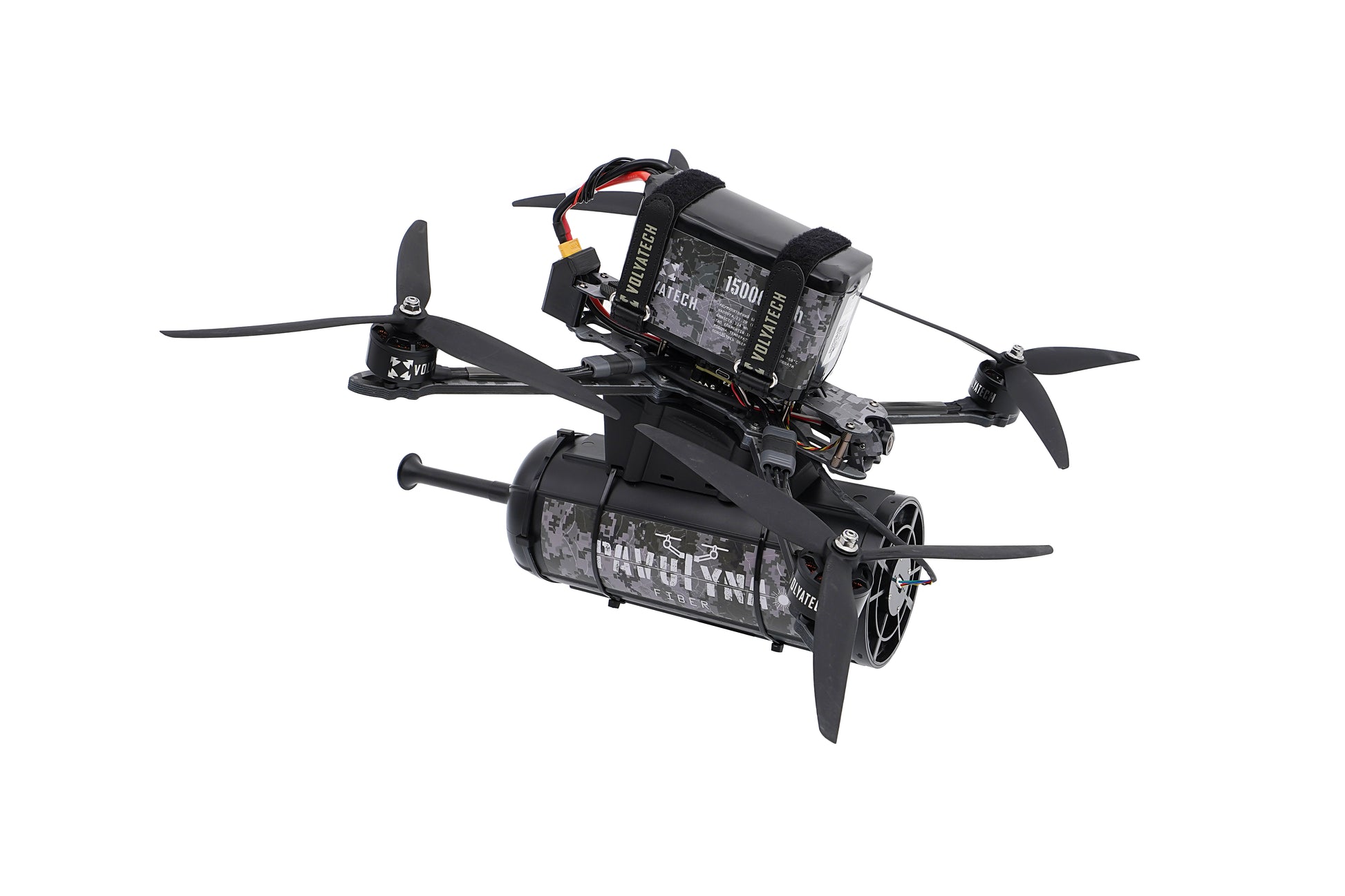 Getting a Pavutodron mission-ready is fast and simple — just attach the battery, connect the bracket and fiber, wire initiator to payload, and the aircraft is ready. Our streamlined design means you can be ready to launch in minutes, even under frontline conditions.