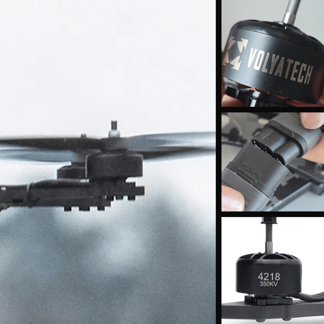 Corrected sized for the mission. Pavutodron motor arms use quick-disconnect plugs, making field assembly fast. Transport or store the drone in parts, and re-assemble with just a few screws in minutes. Units will ship to you pre-assembled.